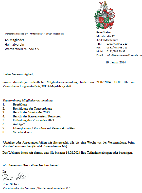 21.02.2024 (Mittwoch), 18 Uhr Jahresmitgliederversammlung