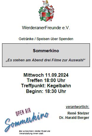 Mitgliederversammlung (18:00 Uhr) und Sommerkino (ca. 19:30 Uhr)
