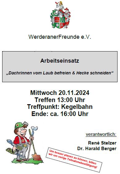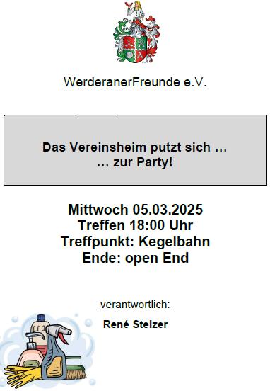 05.03.2025 (Mittwoch), 18:00 Uhr Arbeitseinsatz