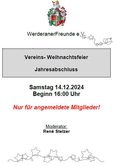 14.12.2024 (Mittwoch), 16:00 Uhr „Vereins-Weihnachtsfeier“