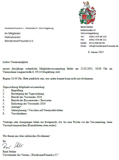 12.02.2025 (Mittwoch), 18:00 Uhr Mitgliederversammlung