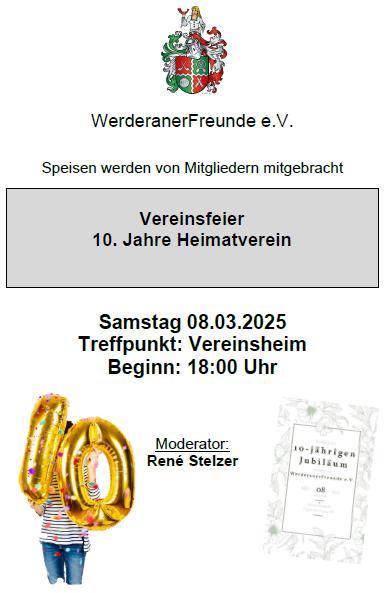 08.03.2025 (Sonnabend), 18:00 Uhr Feier zum 10-jährigen Vereinsjubiläum