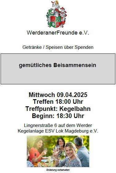 26.05.2022 (Donnerstag), ab 11 Uhr "Werderaner Frühschoppen anlässlich Christi Himmelfahrt"